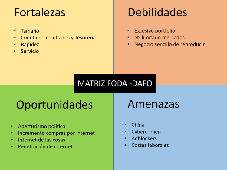 4.Cumplimentamos la matriz FODA o DAFO